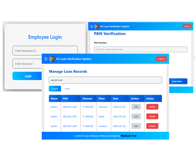 βWebHatch developed our PAN verification module for KS Loan system. The platform is fast, reliable, and helped us streamline customer verification efficiently.β